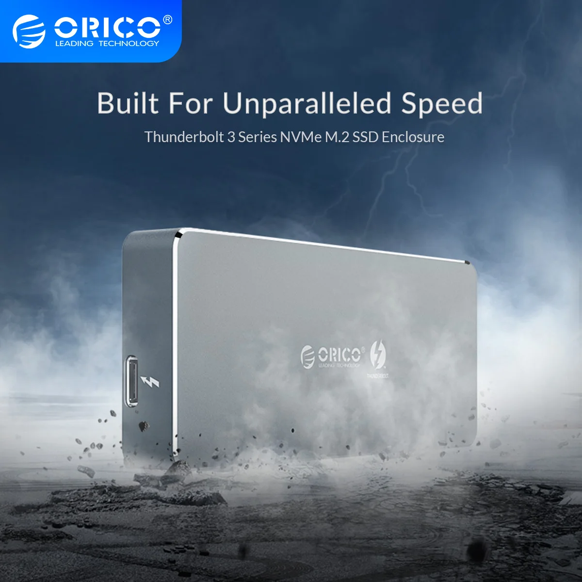 Best Price of ORICO M.2 NVME Thunderbolt 3 40Gbps SSD Case Support 2TB Aluminum Type-C with 40Gbps Thunderbolt 3 Cable USB C Hard Drive Box